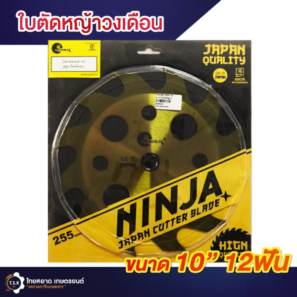 ใบตัดวงเดือน 10 นิ้ว 12ฟัน ตราninja ใบเลื่อยตัดหญ้า . ใบมีดตัดหญ้า ใบตัดหญ้า ใบวงเดือนตัดหญ้า ใช้กับเครื่องตัดหญ้าสะพายได้ทุกรุ่น