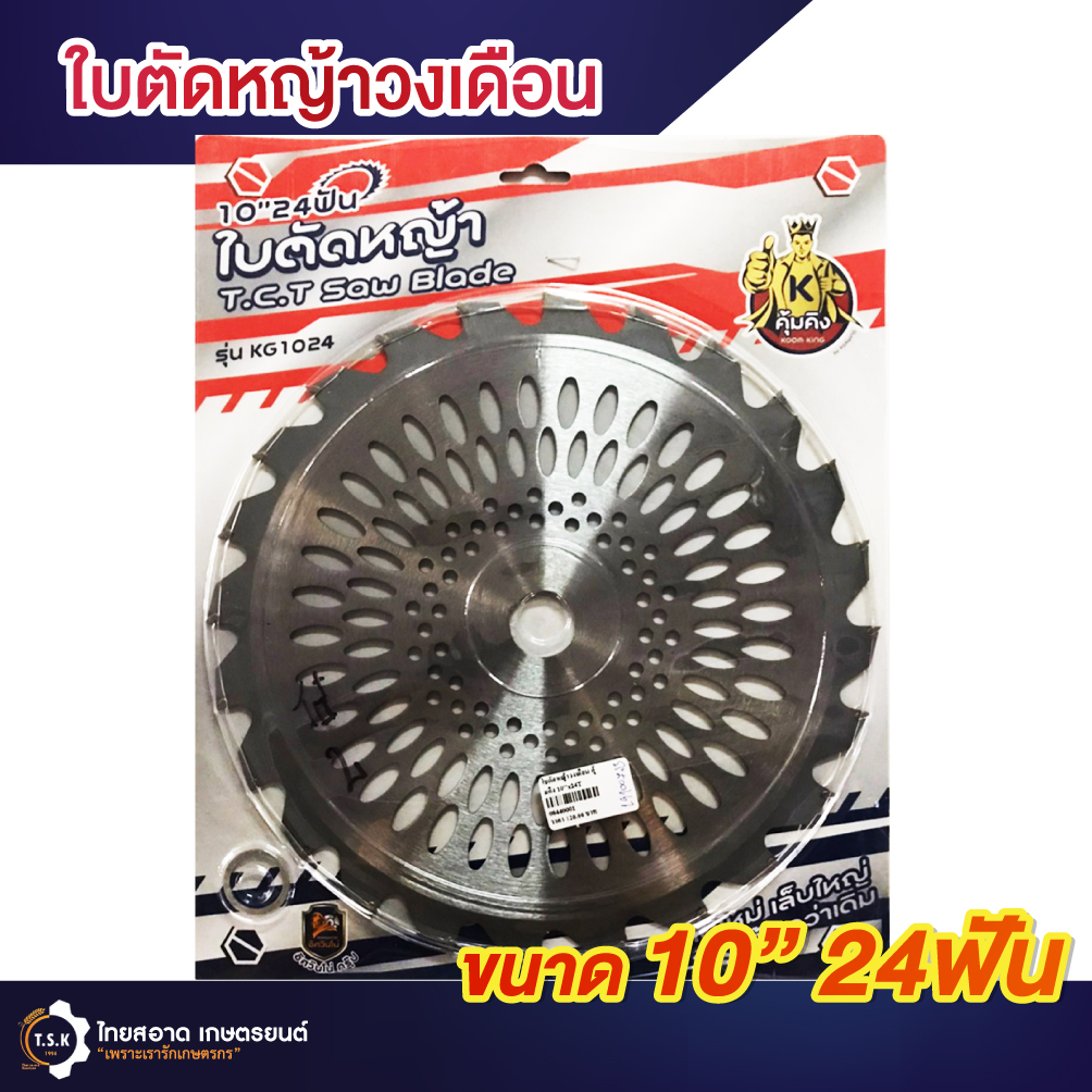 ใบตัดวงเดือน 10 นิ้ว 24ฟัน ตราคุ้มคิง ใบเลื่อยตัดหญ้า . ใบมีดตัดหญ้า ใบตัดหญ้า ใบวงเดือนตัดหญ้า ใช้กับเครื่องตัดหญ้าสะพายได้ทุกรุ่น